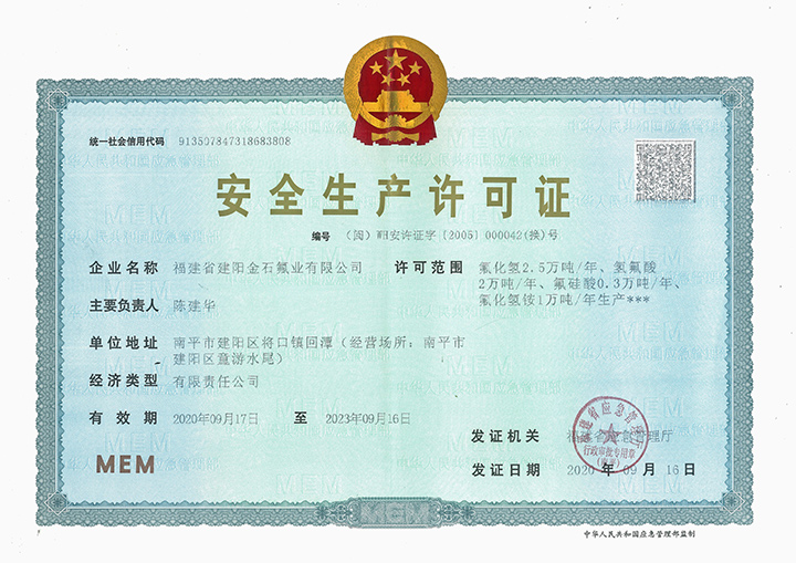 福建省建陽金石氟業有限公司主要從事氟化工產品無水氟化氫、無機氟鹽,以及電解氟等系列產品的生產銷售,是集螢石開采、氟化工深加工為一體的綜合企業。主要產品、規模:年產制酸級螢石粉5萬噸、無水氟化氫4萬噸、試劑級氫氟酸2萬噸、氟化氫銨(氟化銨)1萬噸、氟碳表面活性劑30噸。
